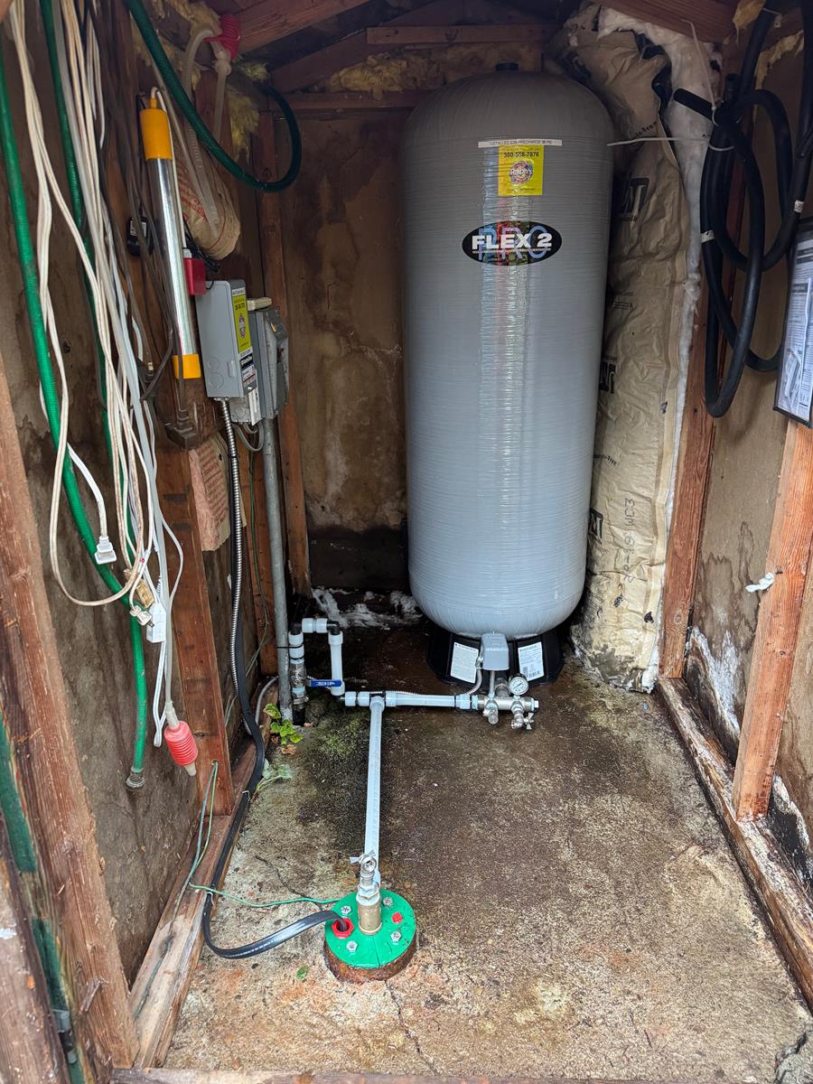 This project replaced an aging ½ HP two-wire submersible pump and failing pressure tank with a new ½ HP three-wire pump system, control box, low-water protection, and a new 81-gallon pressure tank.